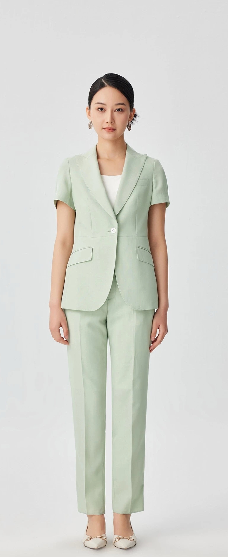 夏日西装新风尚,解锁清凉与格调 在骄阳似火的夏日,西装不再是厚重与闷热的代名词。当传统正装邂逅夏日风情,一场关于轻盈与优雅的变革正在上演,重新定义你的夏季穿搭美学。 夏季西装在面料上进行了大胆革新。选用天然透气的亚麻材质,其独特的纤维结构能迅速排出热气,让肌肤时刻保持干爽,即使在炎炎烈日下穿梭于城市之间,也能感受清